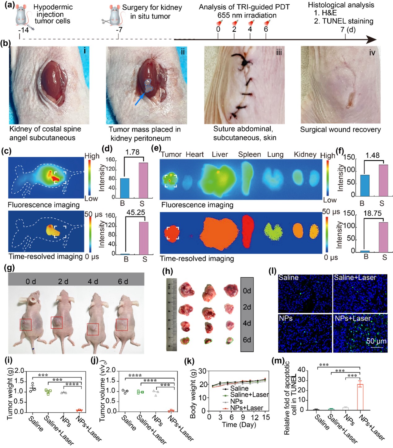 图5. 动物体内长寿命的TRI引导的光动力治疗。
