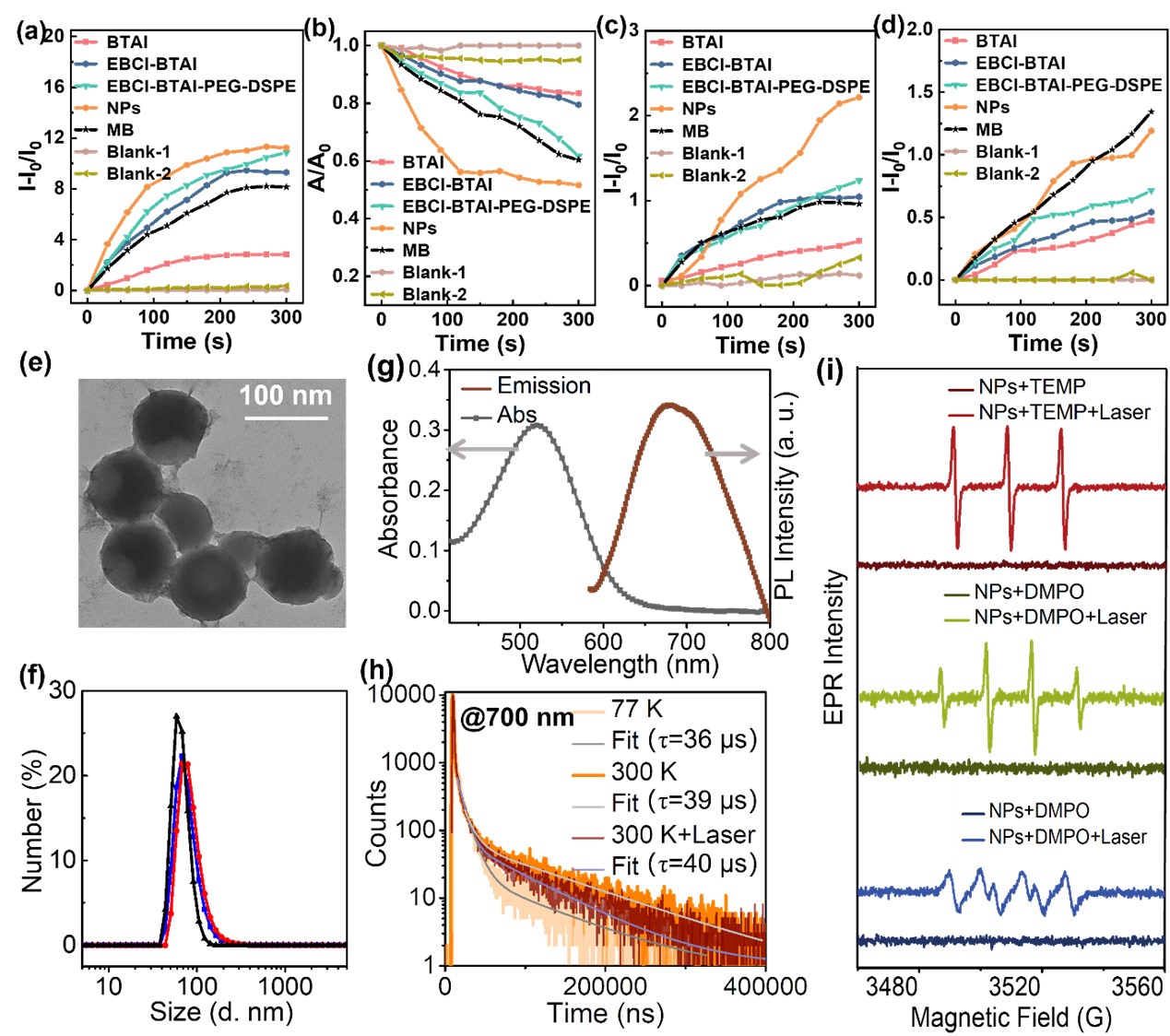 图3. 纳米颗粒的TADF性质和活性氧生成能力。