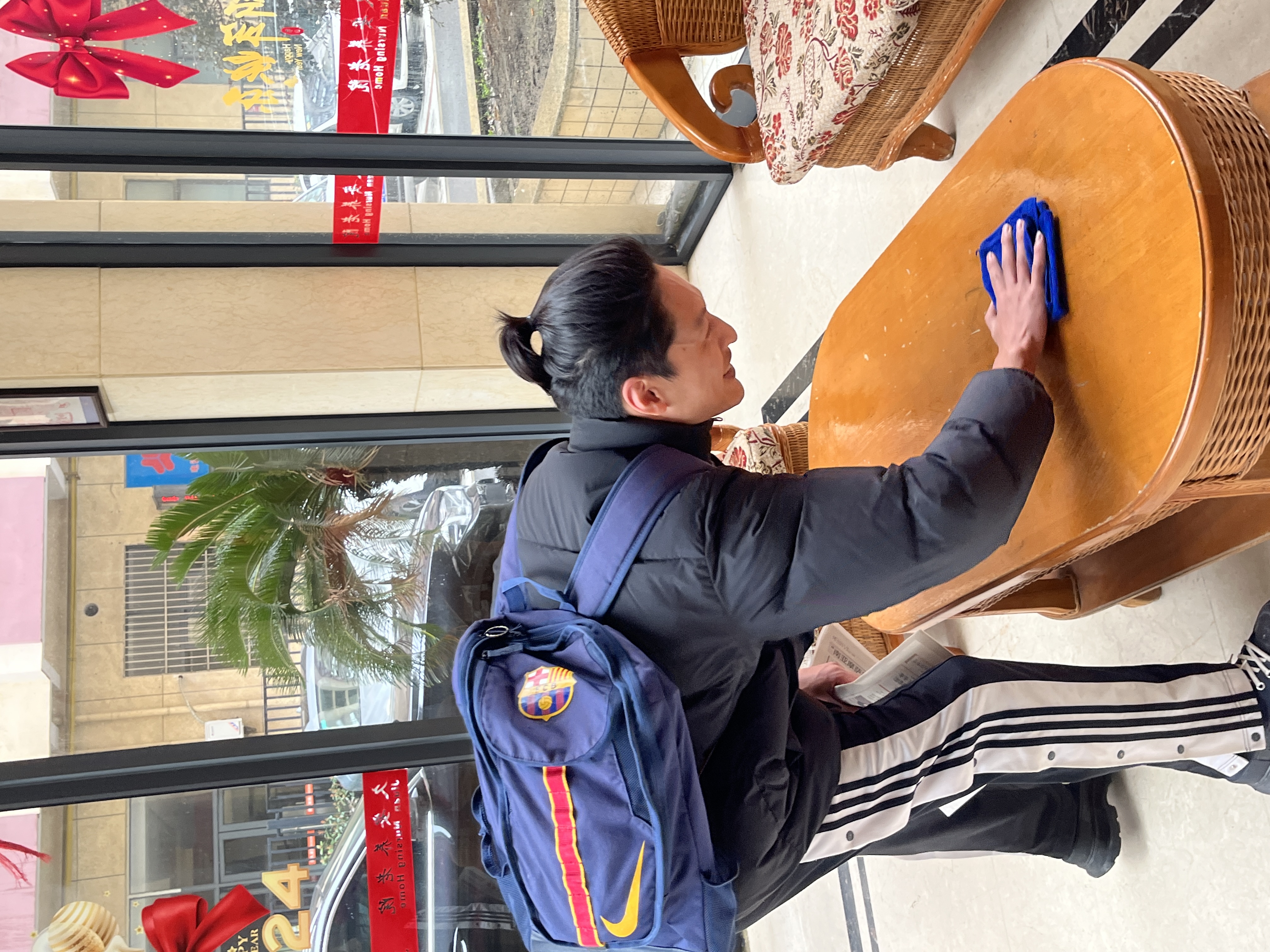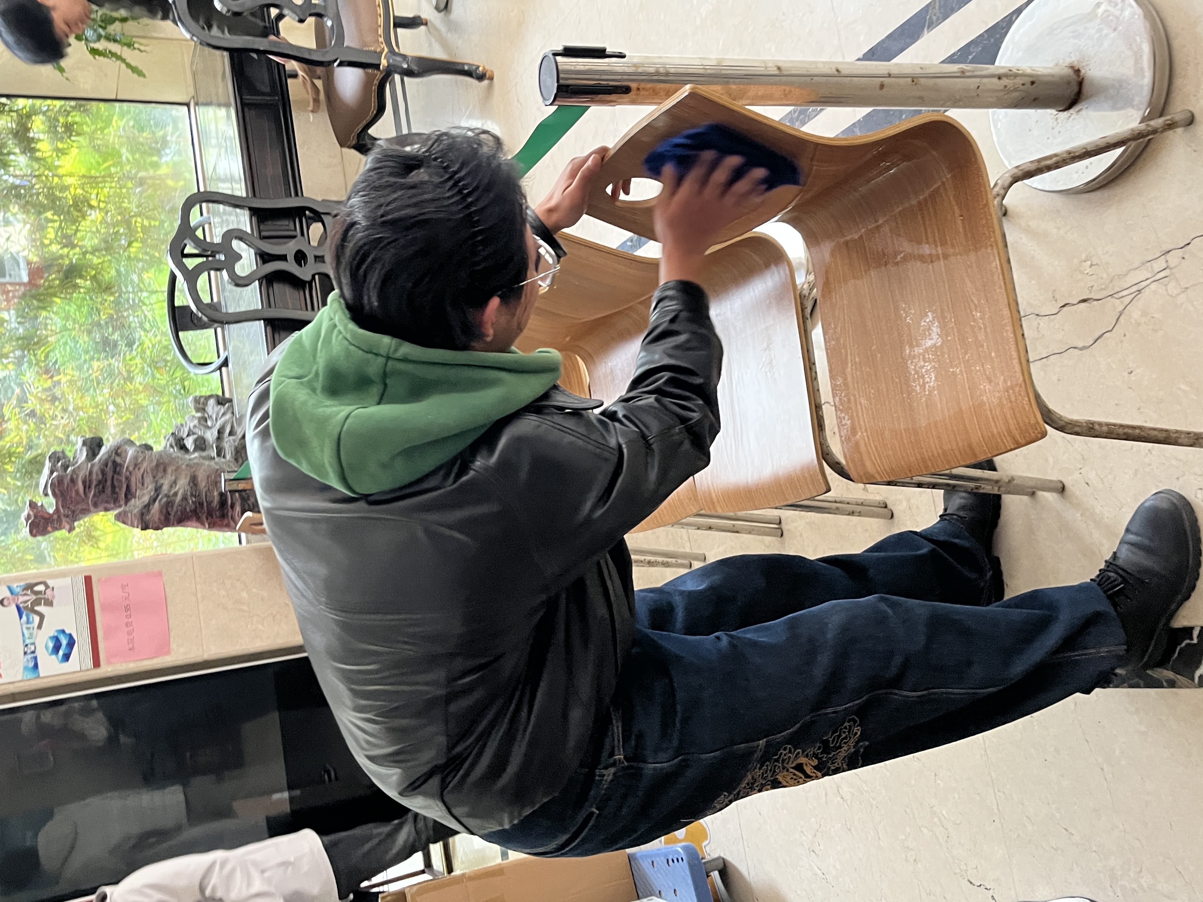 上午,2023级专业硕士团支部的同学出发至久安养老院。志愿者们一到目的地,就快速投入到养老院的公共空间清理中,分工协作,细心擦拭桌椅、清扫地面,将养老院大厅打扫得干干净净,创造更加干净整洁的居住环境,让老人们生活更加舒心。