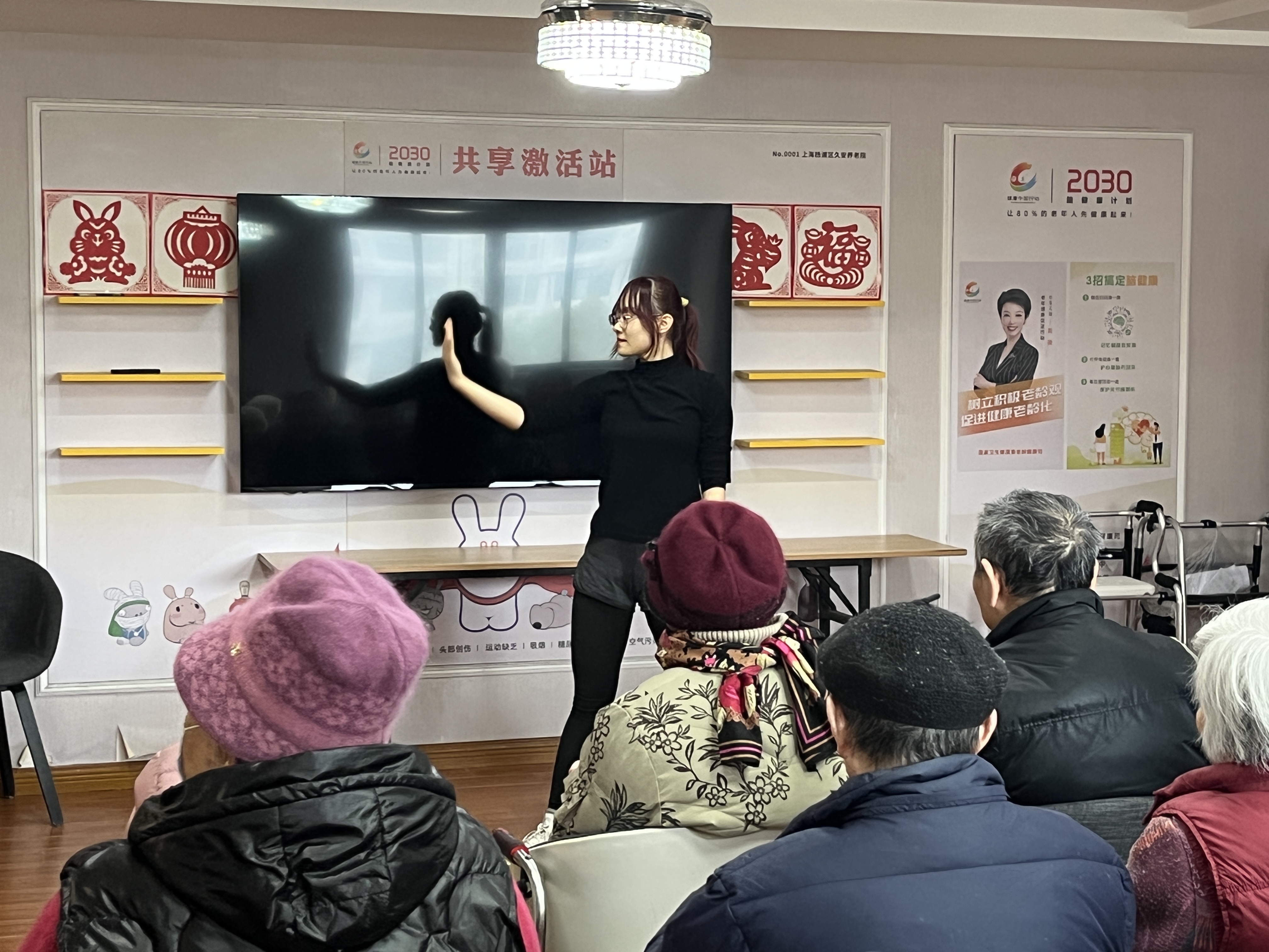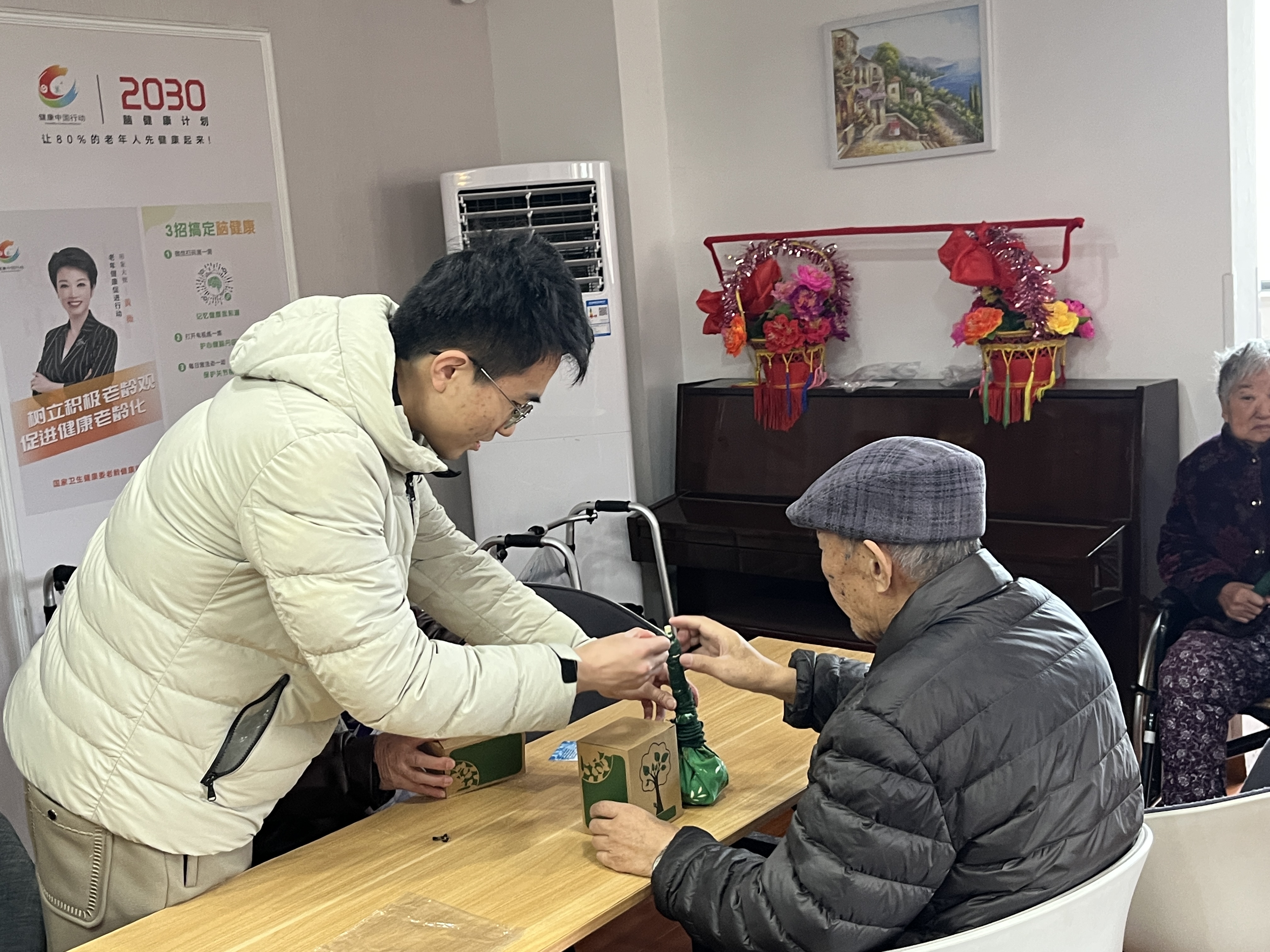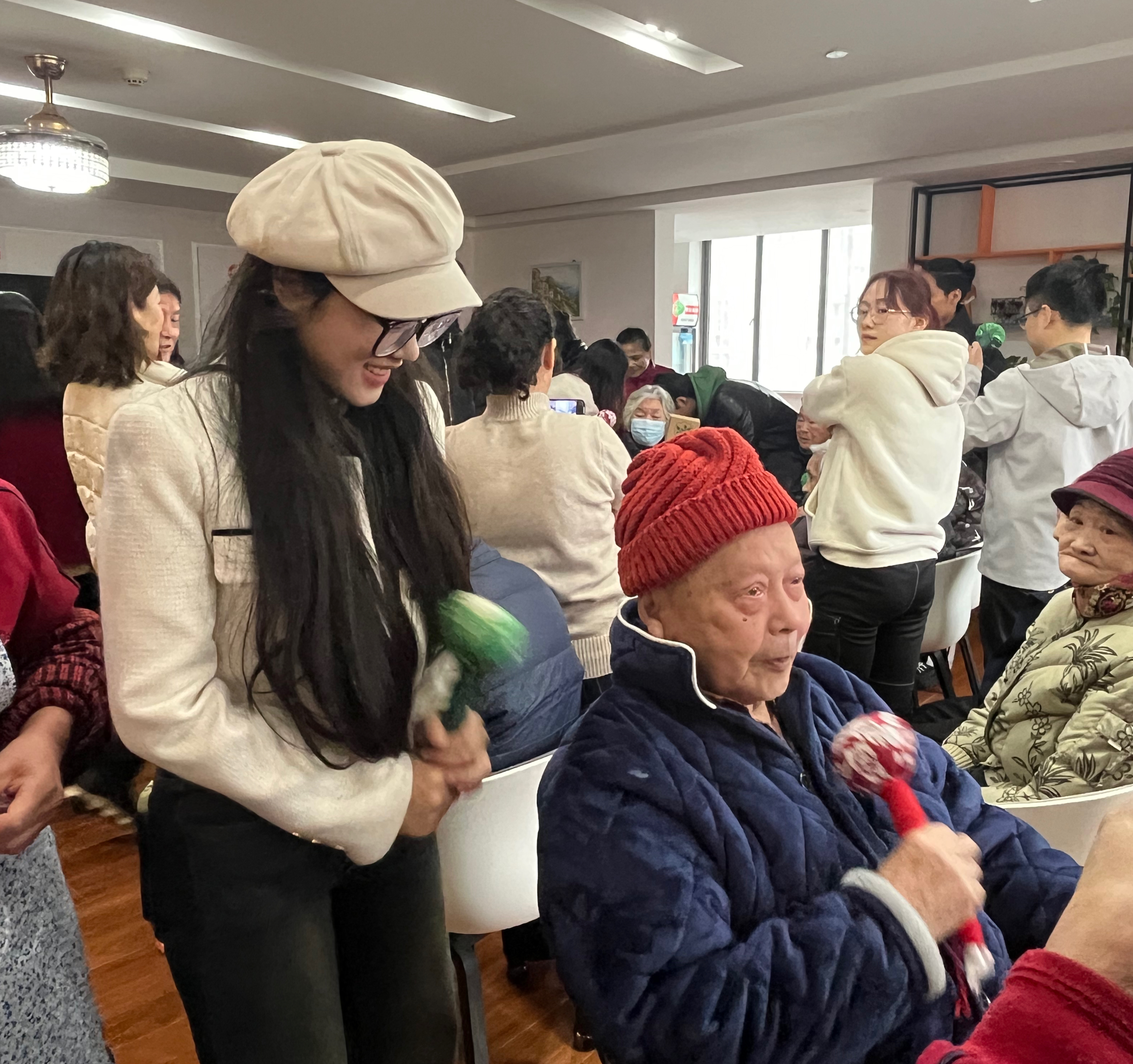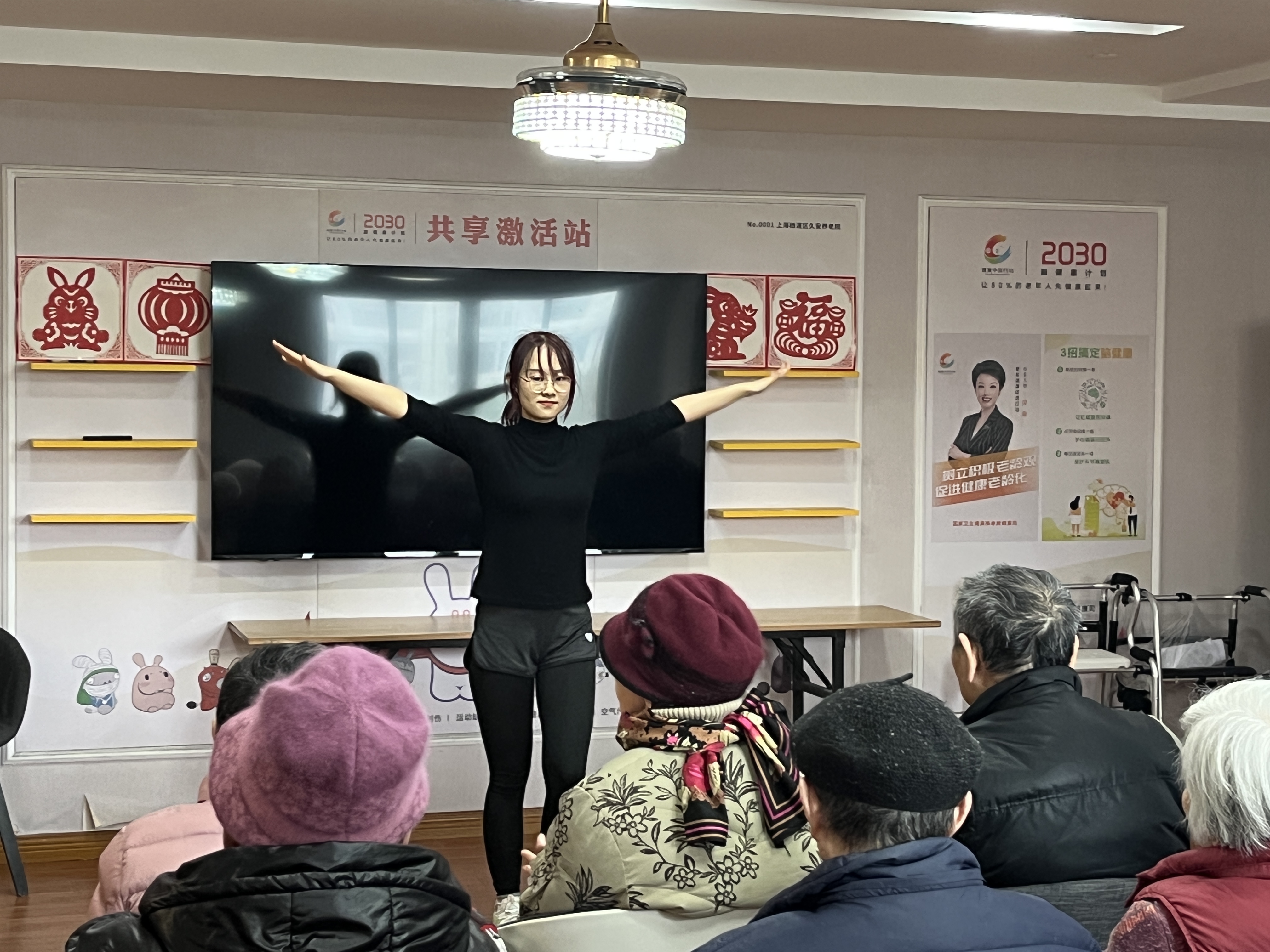 随后,董开心同学为老人们带来了体操表演,将活动气氛推向高潮,老人们开心地观看表演。