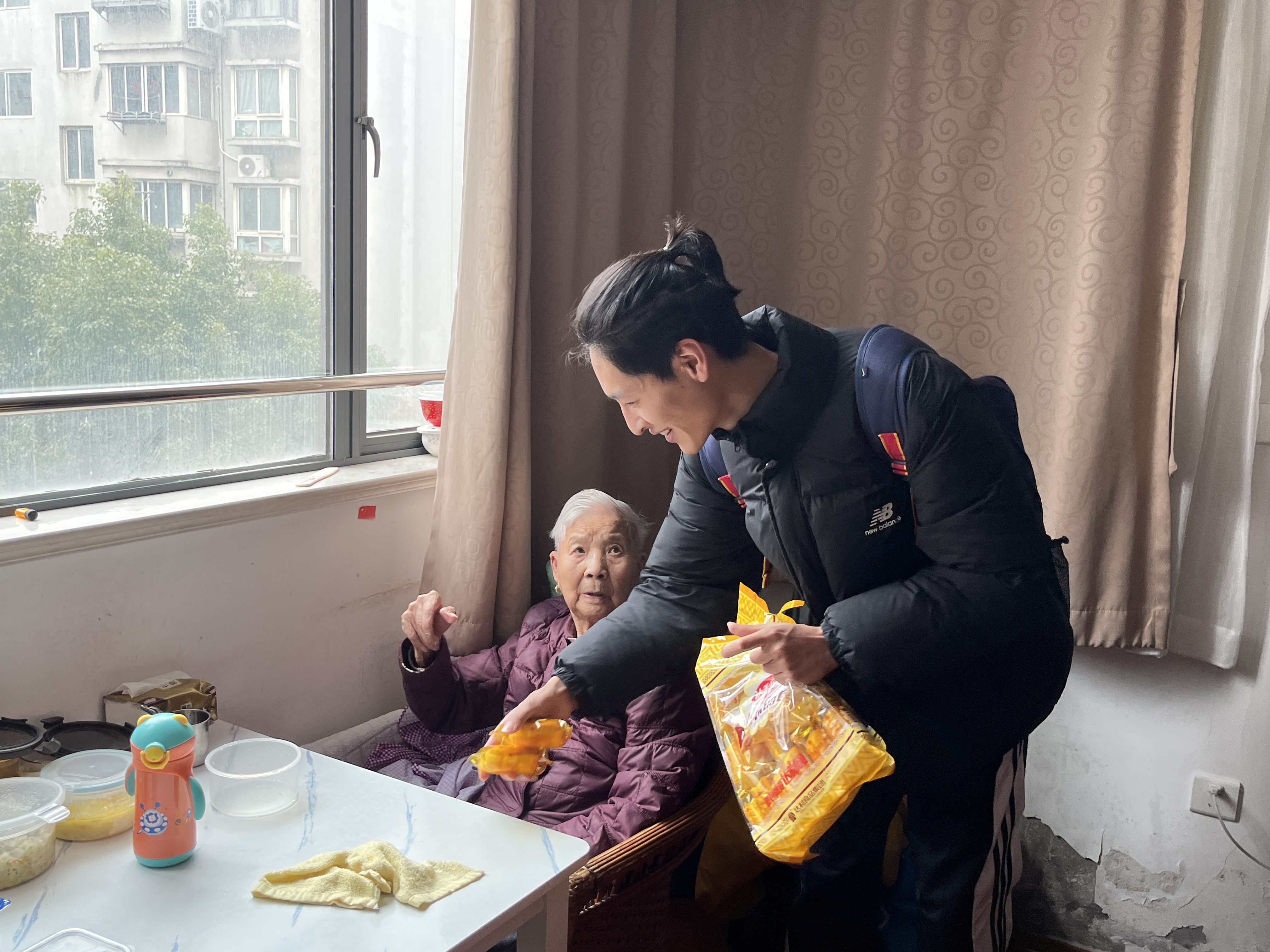 集体活动结束后,志愿者们分成了三个小组进入爷爷奶奶们的房间,陪他们聊天,询问、关心老人们的生活起居与身体健康状况,倾听老人们的心声。养老院里的老人们非常喜欢同学们,期望着志愿者们的再次到来。他们热心,积极,像大家的爷爷奶奶一样。同学们也为老人们送上了生活用品、水果等爱心物资。