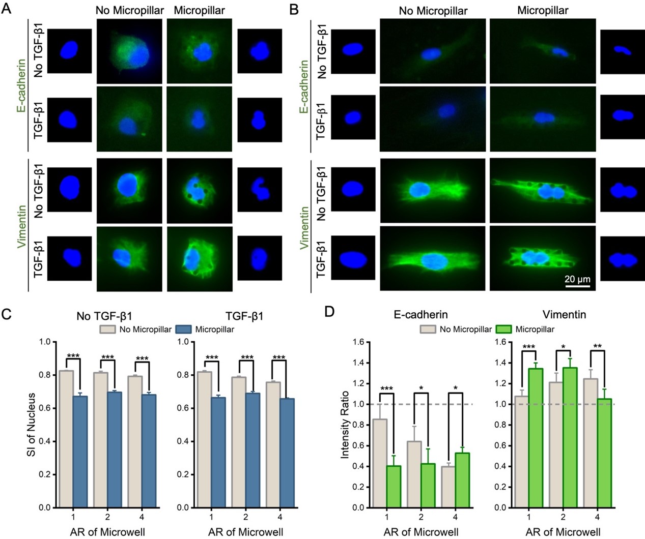 4. 微柱阵列导致的细胞核变形影响上皮-间质转化