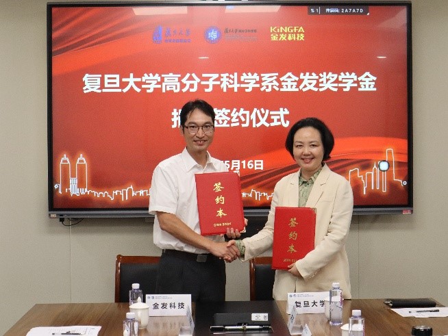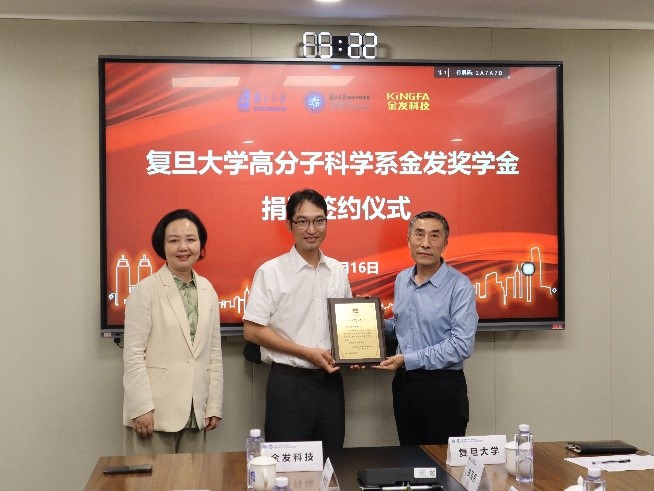 2025年5月16日下午,Bet365中文网址 金发奖学金捐赠签约仪式在江湾校区化学-高分子楼B2084隆重举行。金发科技副总经理兼华南公司总经理、上海金发科技董事长黄河生,金发科技华东公司技术副总经理杨霄云,金发科技相关部门领导,上海复旦大学教育发展基金会副秘书长、复旦大学对外联络与发展处副处长章晓野,Bet365中文网址 党政班子成员、师生代表出席参加本次捐赠签约仪式。仪式由Bet365中文网址 党委书记刘顺厚主持。