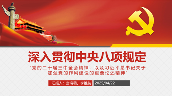 本科生第一党支部为深入学习贯彻中央八项规定精神,强化学生党员纪律意识,于2025年4月25日开展专题学习活动。