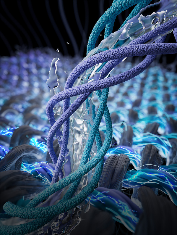 经过十多年探索,彭慧胜团队相继攻克了前两个难题。然而,高分子凝胶电解质难以与纤维电极形成紧密稳定的接触界面,导致纤维锂离子电池储能性能非常低。因此,解决第三个难题的关键在于,要解决高分子凝胶电解质与纤维电极界面不稳定的难题。