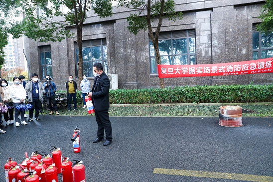 应急演练模拟的第一个场景:江湾校区高分子楼B5084实验室内的四位同学在通风橱内进行实验操作,使用电吹风引发电气火灾,引燃了烧杯内乙醚,慌乱中被打翻,造成流淌火,实验服袖口被点燃。与此同时,实验室曾经使用金属锂,由于认为已经反应完毕,丢入了垃圾桶,此时突然开始冒烟。