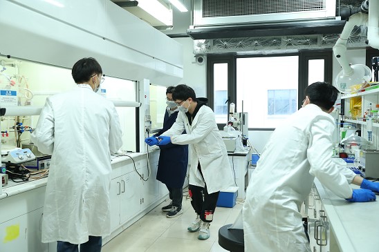 图3. 学生用灭火毯盖住着火的实验服,受伤学生在窗边的水池冲洗伤口 图4. 学生在药箱中拿取烫伤膏
