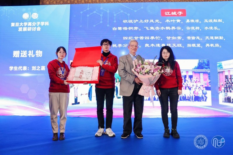 紧接着,学生代表为杨玉良老师送上了一份珍贵的礼物,他们收集了杨老师从教45周年的精彩瞬间,集合成《分子聚凝,璞玉良才》的纪念画册以表庆贺,并表达青年学子的崇敬之情与传承之志。一代人有一代人的使命,一代人有一代人的担当。作为新时代的青年学子纷纷表示,要以老一辈科学家为楷模,学习他们的家国情怀,以及崇尚科学、追求真理、严谨治学、潜心育人的精神,树立崇高的责任感与使命感,不忘学术初心,勇攀科学高峰。
