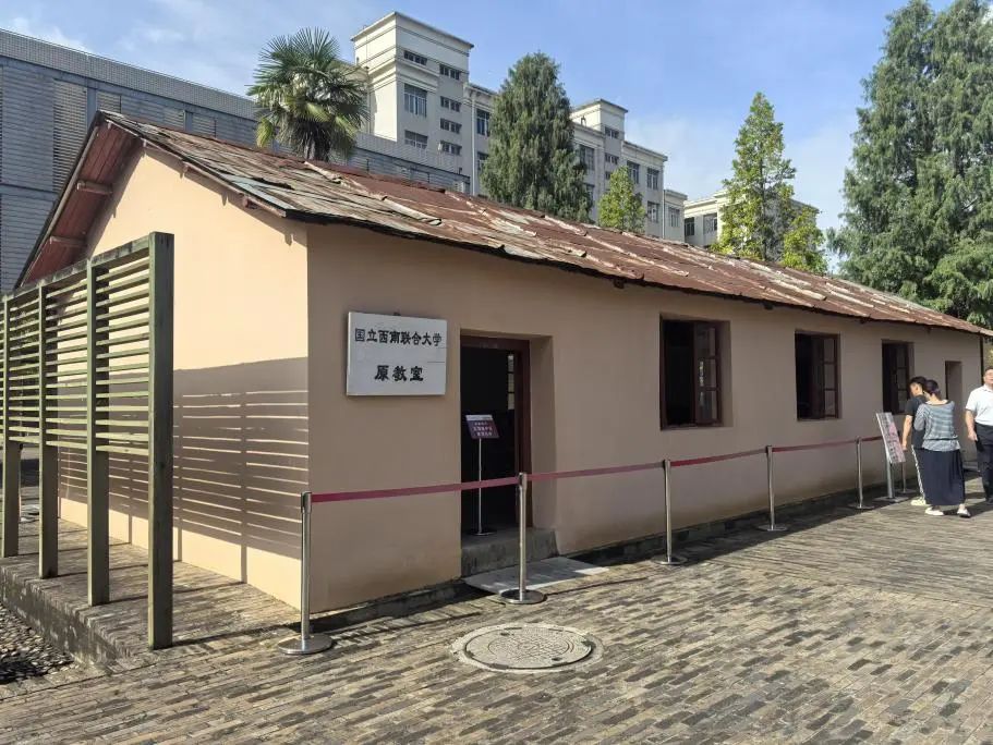 8月7日,实践团队在国立西南联合大学旧址,现为云南师范大学校园内开展学习。国立西南联合大学是抗战时期由北京大学、清华大学、南开大学三校联合组建的临时大学,1937年南迁至云南昆明。在历史特殊时期的九年间,尽管条件艰苦,但师生们秉持 “刚毅坚卓” 的校训,在战火中赓续中华民族的文脉,保留中华文明的火种,被誉为中国抗日大后方的 “民主堡垒”。西南联大的办学理念和精神对中国高等教育产生了深远影响。西南联大聚集了大批中国顶尖学者,而复旦大学也在抗战期间内迁至重庆北碚,两校师生在艰苦环境中坚持学术研究,共同体现了中国知识分子的坚韧与担当。西南联大的“爱国、科学、民主”的联大精神与复旦“博学而笃志,切问而近思”的校训有相通之处,两校均强调在民族危难中坚守教育使命,培养了一批为国家作出重要贡献的人才。鉴往知来,牢记习近平总书记走访西南联大时的嘱托:“培养有历史感责任感、志存高远的时代新人,为实现中华民族伟大复兴提供有力人才支撑。”