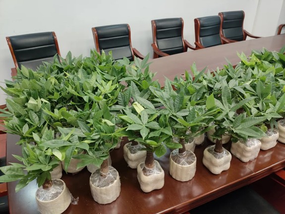 一盆盆生机盎然的发财树小盆栽,寄托着最美好的祈愿——愿这份绿意为老师们带来福气与好运,在岁月静好中陪伴老师们一份宁静与欣喜。