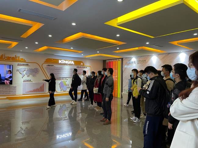 在金发科技杨碎平女士的带领下,同学们首先参观了金发科技的公司展厅,对公司的建设历程、发展方向、主要产品等有了全方位的了解。金发科技总部位于广州,主要聚焦高性能化工新材料的研发、生产、销售和服务。主要产品包括改性塑料、完全生物降解材料、特种工程塑料、碳纤维及复合材料等,与高分子息息相关。