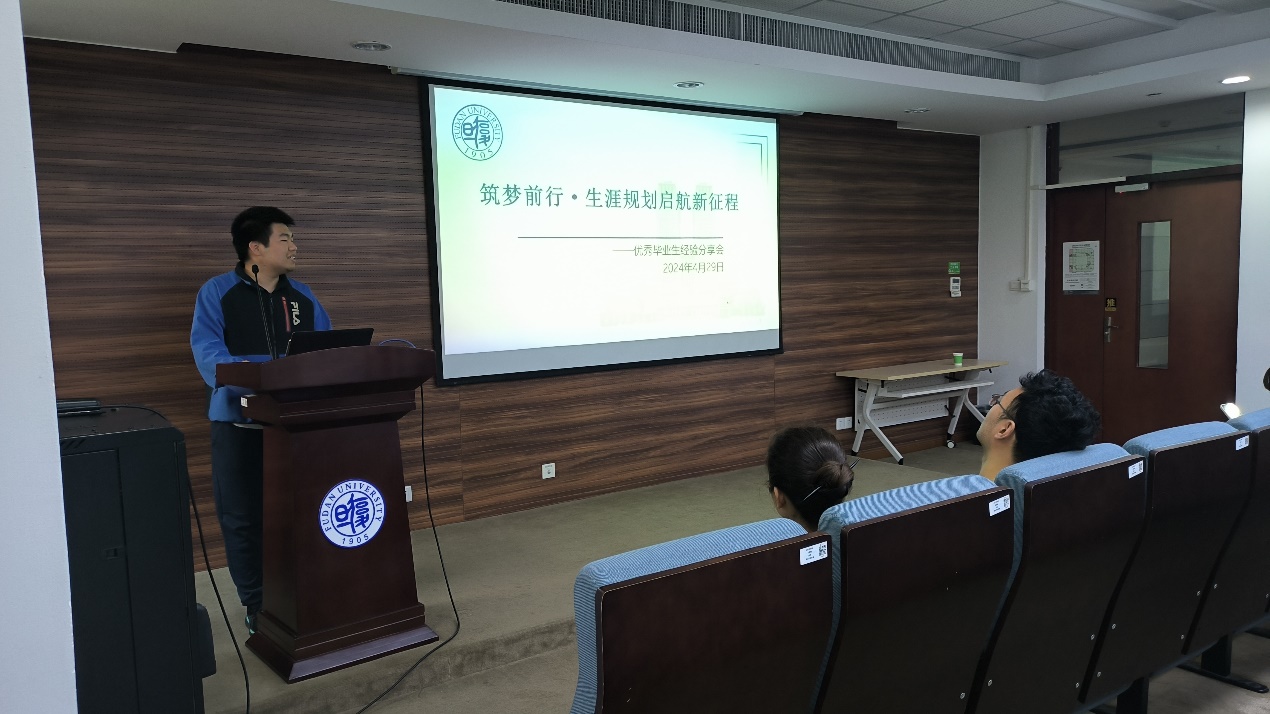 为发挥优秀毕业生的榜样引领作用,帮助同学们明确学习目标、规划职业生涯,2024年4月29日下午,Bet365中文网址 研究生会在系楼B2085报告厅举行2024届优秀毕业生经验分享会,本次分享会邀请了优秀毕业生谷宇、李露阳、王宁、虞思汇等4位同学分享交流科研和求职经验,活动由研究生会组织部部长王纪峰主持。