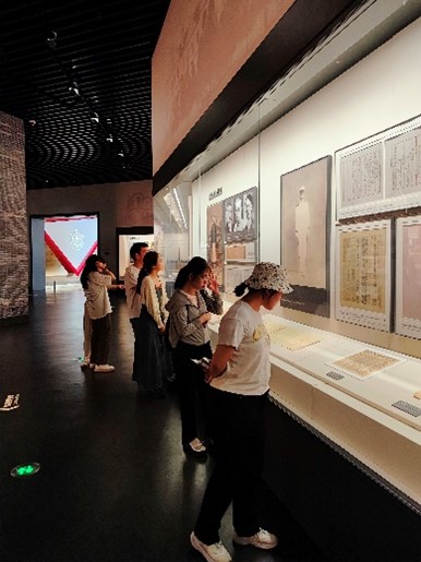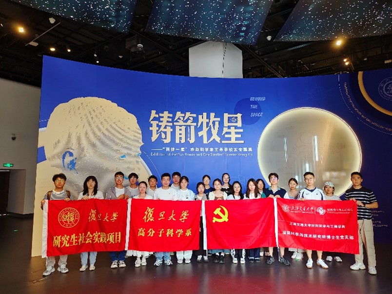 首先,凝固所博士支部书记董续雨带领双方人员前往文博楼,参观上海交通大学校史馆和“铸剑牧星—‘两弹一星’功勋科学家王希季校友专题展”。交通大学历史厚重,研四支部成员在参观过程中对相关历史脉络有了深刻的了解,董续雨和支部其他成员积极发挥讲解员的作用,为同学们延伸出更多精彩的故事。在“铸剑牧星—‘两弹一星’功勋科学家王希季校友专题展”参观环节,双方成员对于航空航天的认识更加全面,主动将其与新质生产力理论结合,时常驻足讨论,真正做到在实践中学,在学中实践。