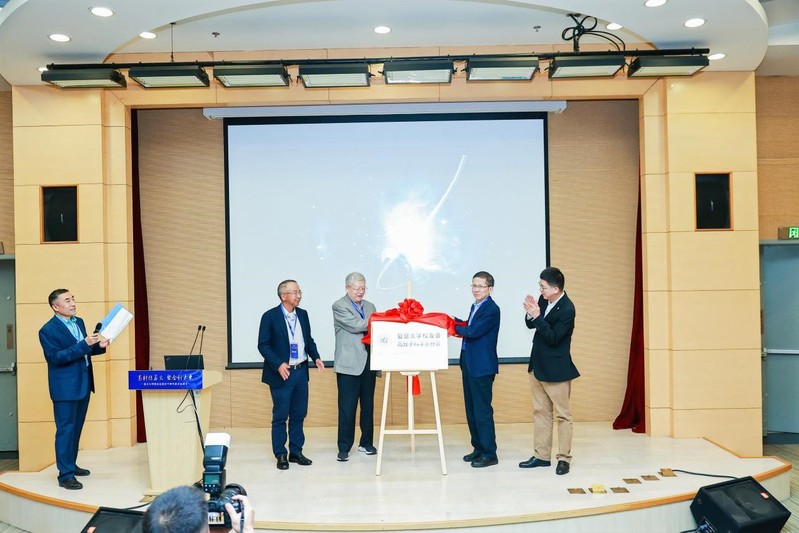 在全体校友代表和各位嘉宾的共同见证下,徐雷副校长、杨玉良院士、阮伟祥董事长、刘莉处长为复旦大学校友会Bet365中文网址 分会揭牌。