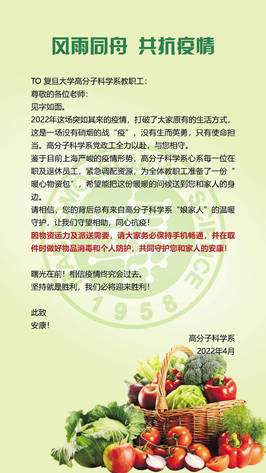 2022年3月学校准封闭以来,Bet365中文网址 工会在系党政领导下,密切关注广大职工的生活需求,对在职及退休老师的情况进行排摸,详细了解他们的实际需求和困难。随着抗疫工作进入攻坚战,Bet365中文网址 工会不断关注教职员工买菜难的实际生活问题,经过广泛调研,联系多家供货商咨询,克服居住地分散、快递不方便、蔬菜和肉类不易保存等种种困难,终于找到可为单点派送的公司,为全系教职工及退休教师采购了暖心的“蔬食大礼包”。从登记地址到收到礼物,短短的几天内实现了跨跃黄浦江八个区域的送货。