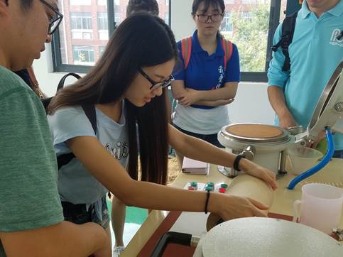 7月4日上午,实践小组一行来到中国纸浆造纸研究院衢州分院,调研高分子科学创新在特种纸制造领域的研究与应用。2017年初,杨玉良院士在衢州市成立了开化纸院士工作站,也是此次前往衢州交流特种纸技术创新的契机。衢州纸院的李老师接待了我系社会实践小组,带大家参观了衢州特种纸展示中心,帮助大家了解特种纸的发展历程与种类;带领大家操作现代设备制备纸张,传授纸张制造过程中的科技技艺;随后,实践小组与衢州纸院的专家学者围绕“高分子科学在特种纸制备中的研究与应用”进行了学术讨论。纸院的孙先启博士介绍了高分子化学品在纸浆工业中的应用,主要涉及造纸过程中的抄纸、纸加工和废液处理三个环节。紧接着,衢州纸院赵丽君博士介绍了她在镍氢电池及隔膜纸方面的研究,主要涉及PP/PE的亲水改性方法。实践小组的成员与现场的专家学者进行了热烈的分享和讨论。