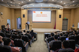 图:刘顺厚书记为全体学生党员做“四史”教育专题党课