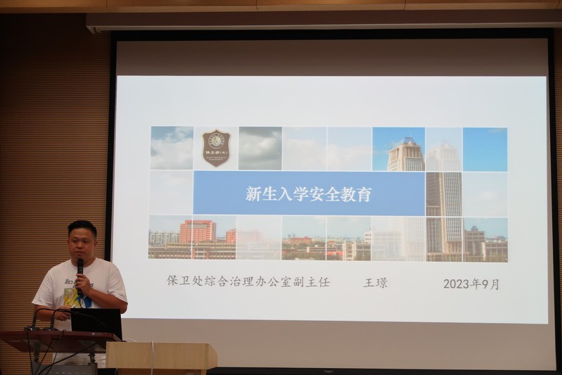 9月5日,校保卫处综合治理办公室副主任王璟老师为2023级硕士生班、2023级博士生同学进行了防诈骗新生教育。王老师首先介绍了校保卫处的基本概况,从主要职责、机构设置两方面总结了近年来的总体治安,并用统计的方式为同学们展示了近年来校园内刑事案件数量变化。针对校园内立案侦查案件的分类,他向同学们提出以下倡议:防盗窃、防诈骗、防火灾,呼吁同学们提高警惕,保护好自身财物,提高安全防范意识。